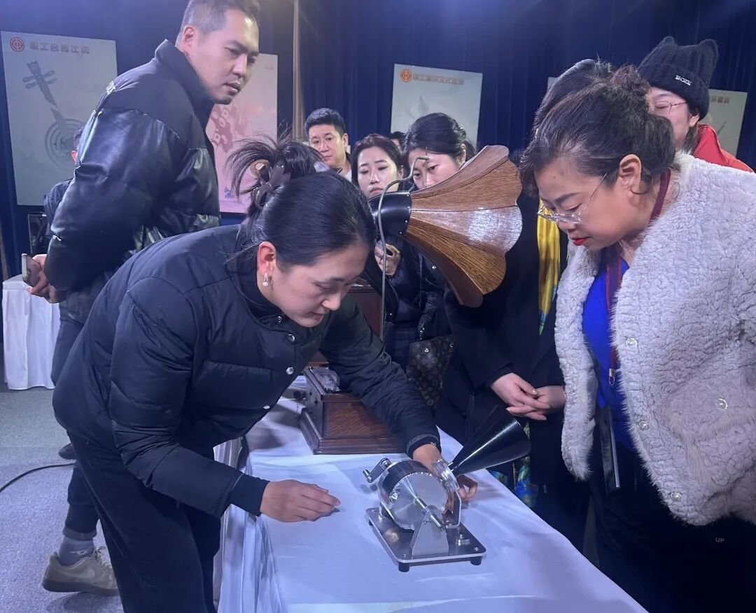 讲师以留声机发展脉络为主线,通过实物展示、技术解析、声音还原等多元形式,系统呈现了从锡纸留声机、蜡桶留声机,到扁平唱片留声机、电唱机的技术迭代历程,生动诠释了科技进步对音乐传播与文化传承的深远影响。沉浸式的教学体验、专业的知识讲解,让会员单位代表们直观感受到博物馆研学课程 “知识性、趣味性、实践性” 相融合的核心优势,为其后续产品设计与市场推广提供了清晰指引。
